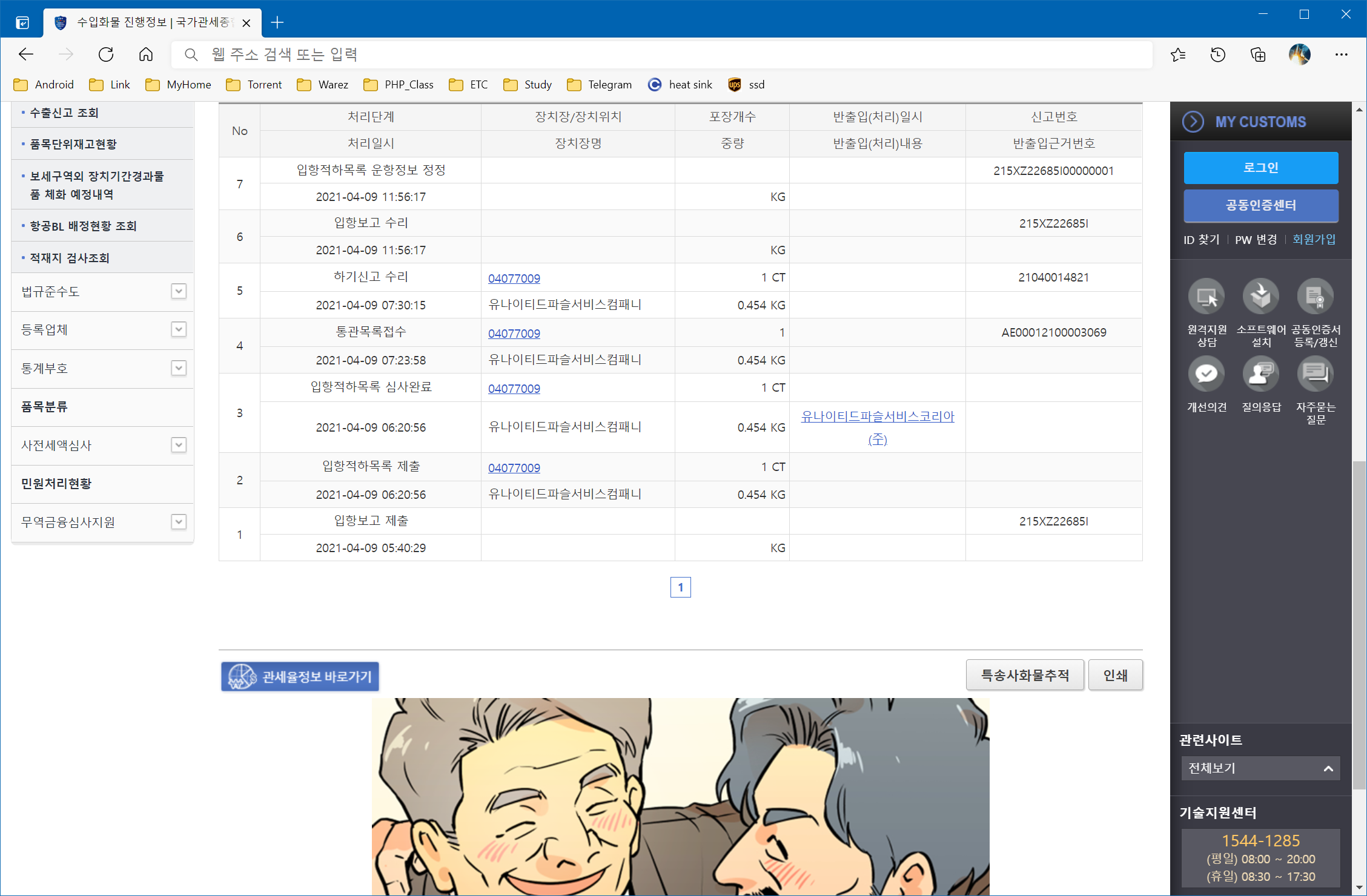 #8. 대략 통관이 어떻게 진행되고 있는지 확인이 가능합니다.
