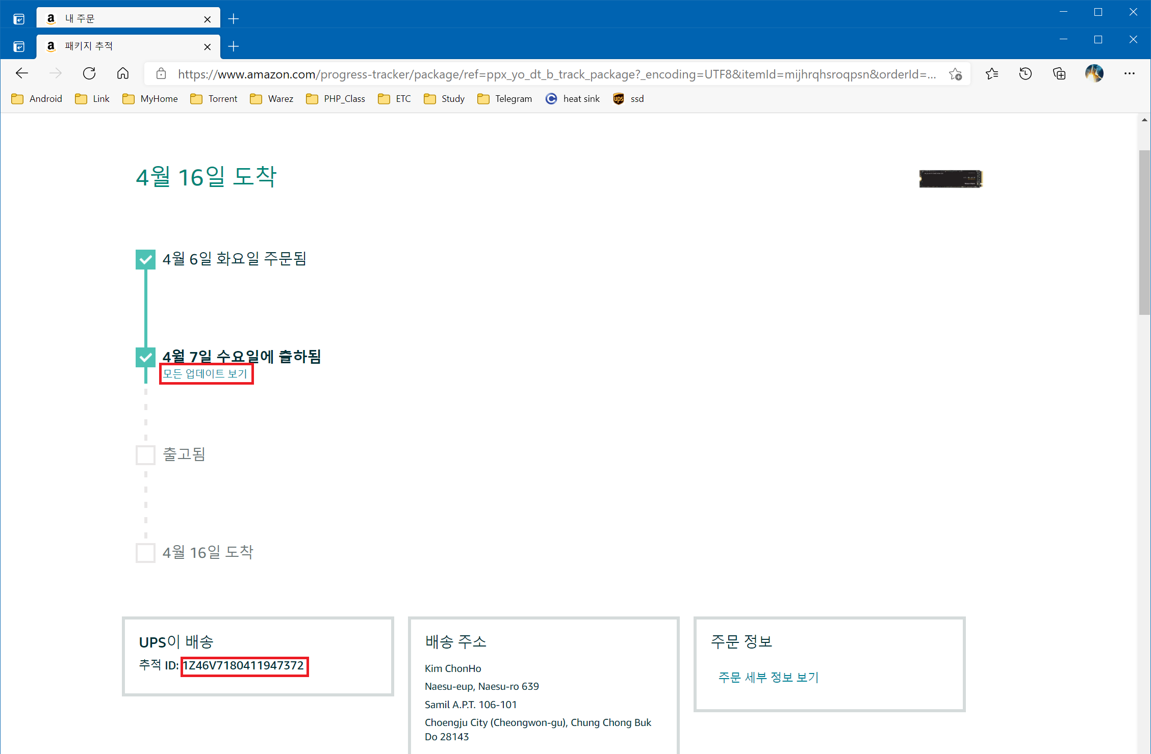 아마존에서 다양한 방법으로 배송하게 됩니다. 그중 UPS 로 배송되는경우 실시간 추적하는 방법을 공유하고자 합니다.