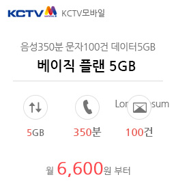 데이터5GB 음성 350분 문자100건 6600원 입니다.