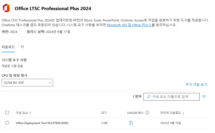 MS Office LTSC Professional Plus 2024 를 정식으로 다운로드 받을수 있습니다.