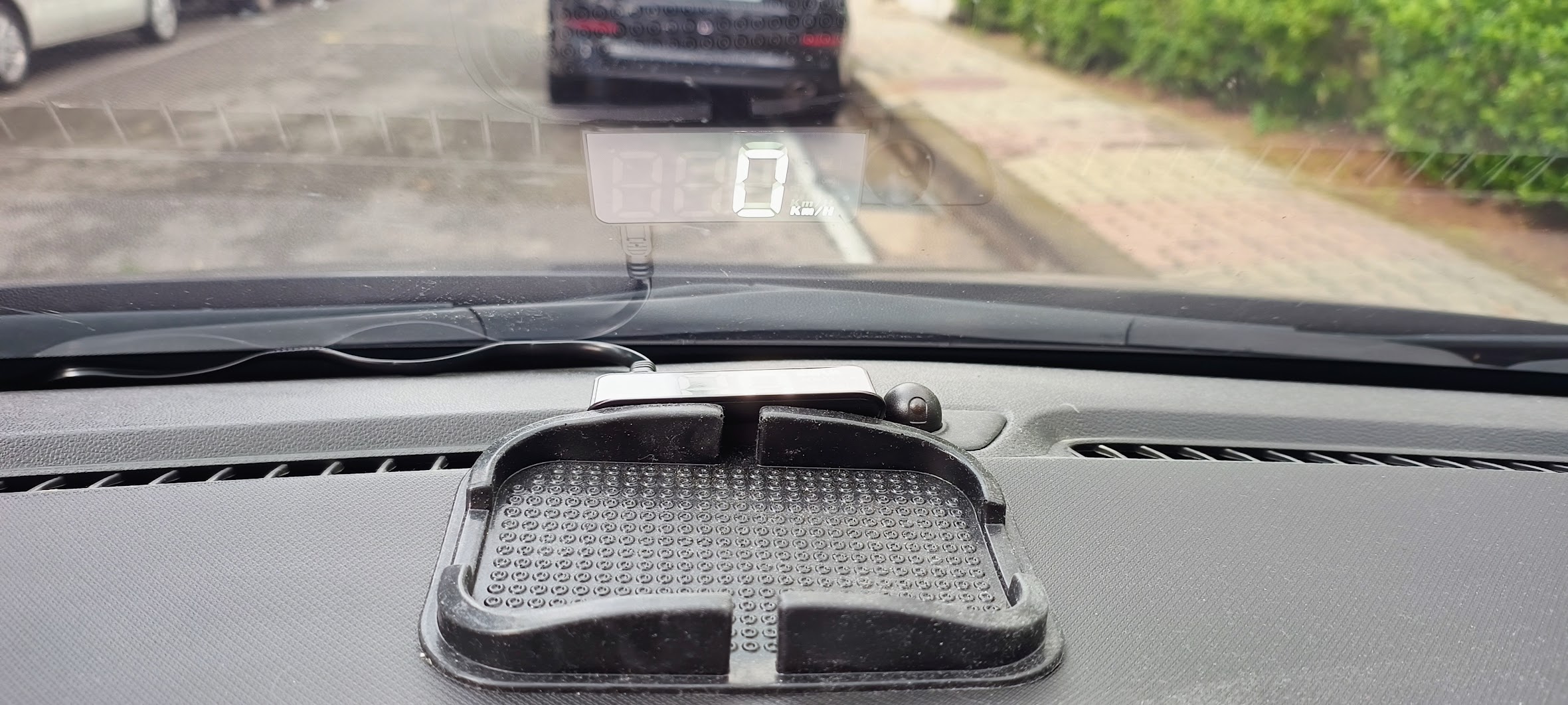 도착하자마자 기다리지 못하고 바로 연결해봤습니다. 생각보다 시인성이 나쁘지 않았습니다. 사진상으로 표현된 시인성보다 실제로 볼때 더 괜찮은 느낌이었습니다. 앞을 볼때 제일 덜 걸리적 거릴듯한 위치를 잡고 OBD 연결하니 바로 나옵니다.