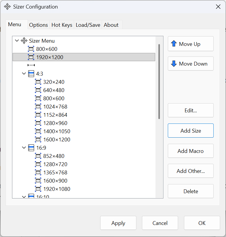 Sizer is a utility to resize windows to exact dimensions. It is used by web designers, technical authors, developers and minecraft players, to exert control over where and how big application windows should be. Preview releases of Sizer 4.0 (the latest ver